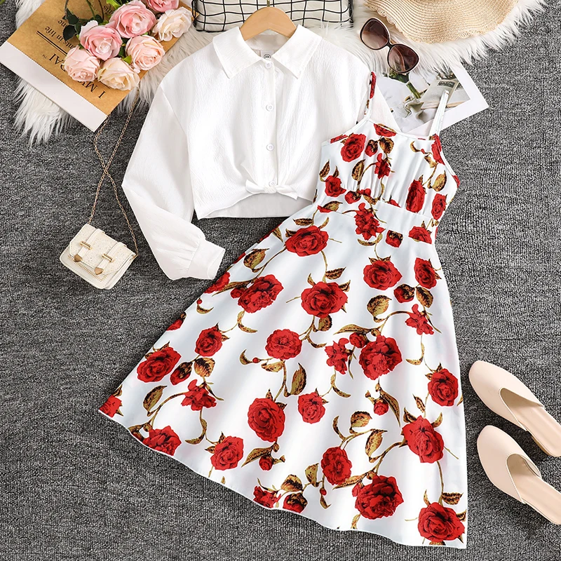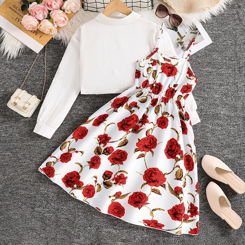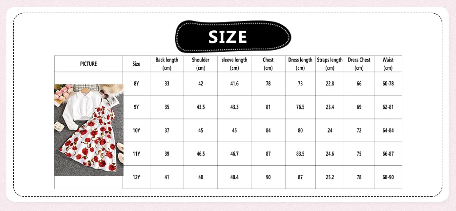 Size:12Y/Top Length:41/Shoulder:48/Sleeve Length:48.4/Chest:90/Dress Length:87/Straps Length:25.2/Chest:78/Waist:68-90